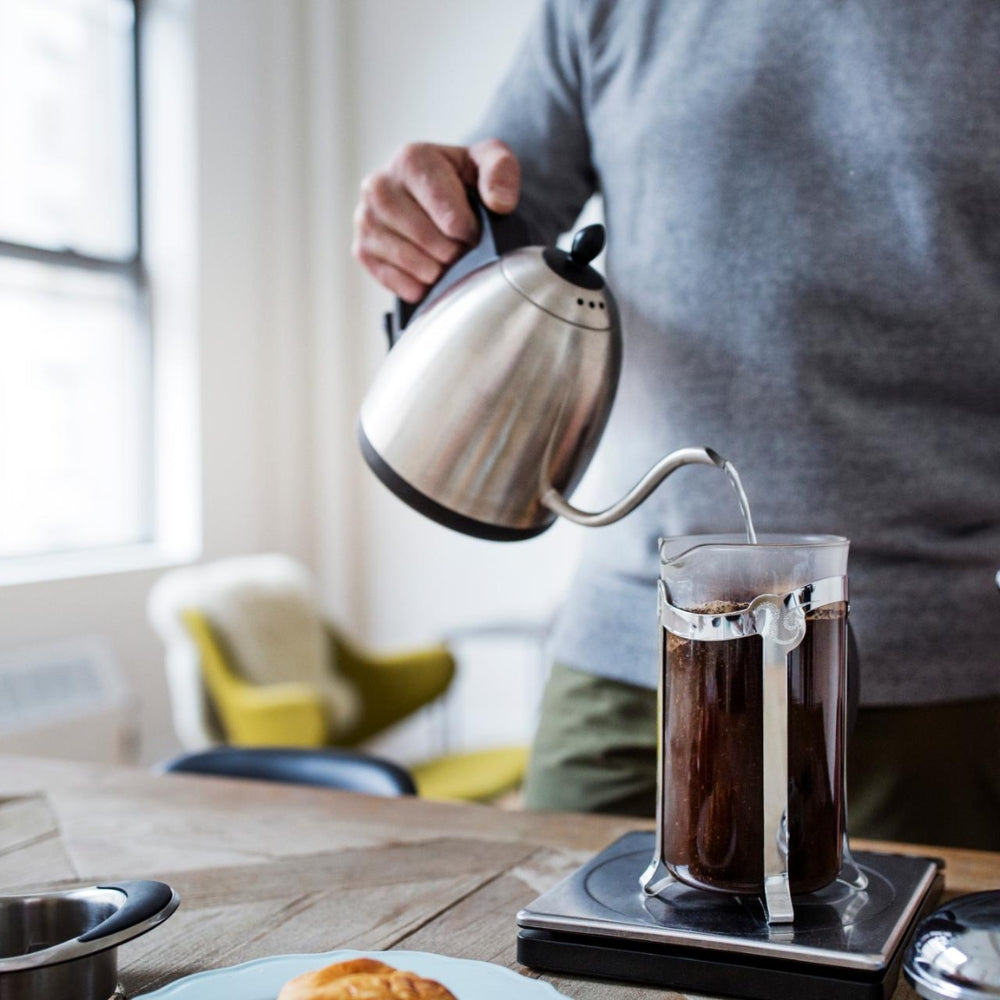 Time to brew!- Pre-heat your French Press with water. Discard the water after a few seconds.