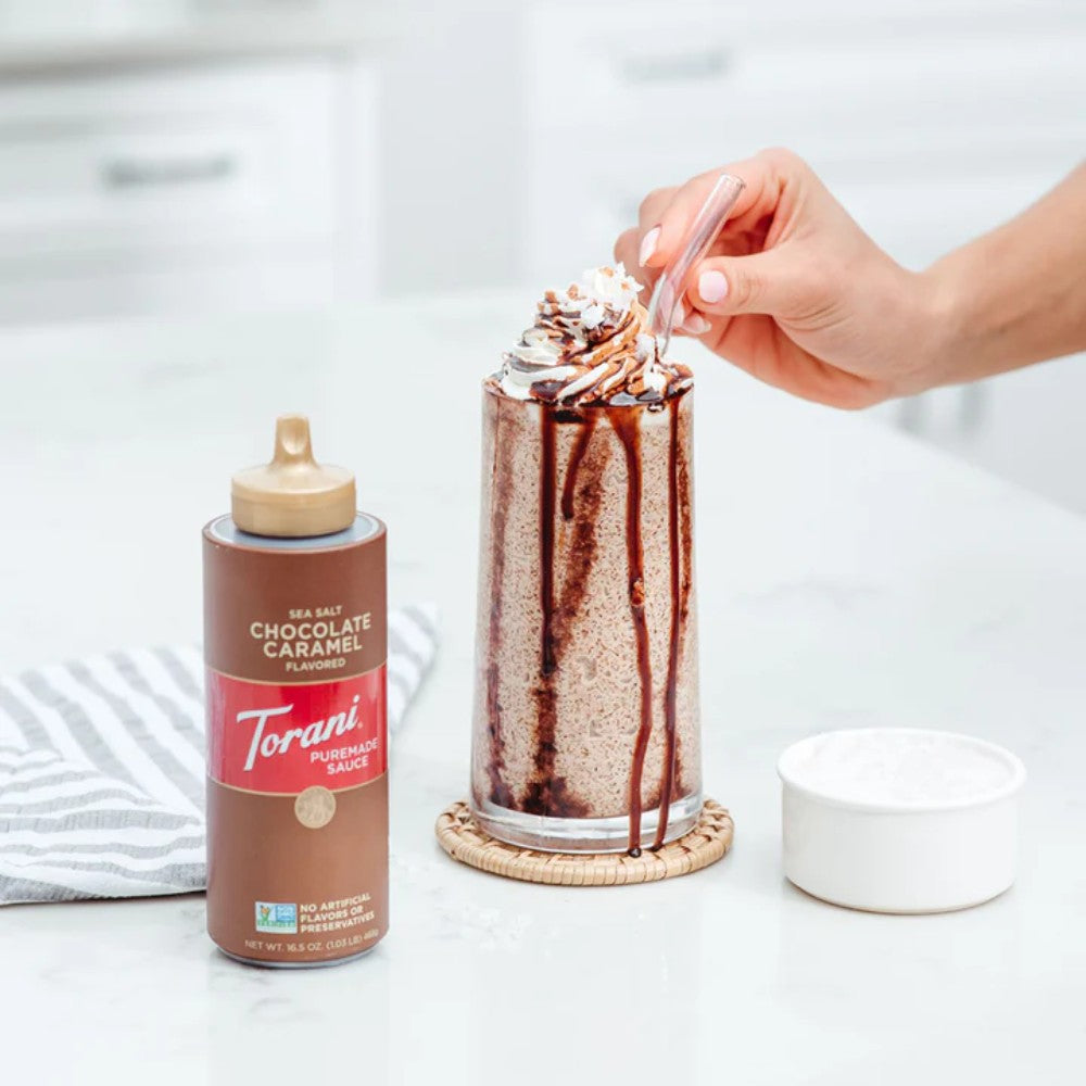 Sweet meets salty. Milk chocolate meets caramel. These flavors combine to deliver a sumptuous sauce that is perfect on top of ice cream, in brewed coffee, mochas, and more.